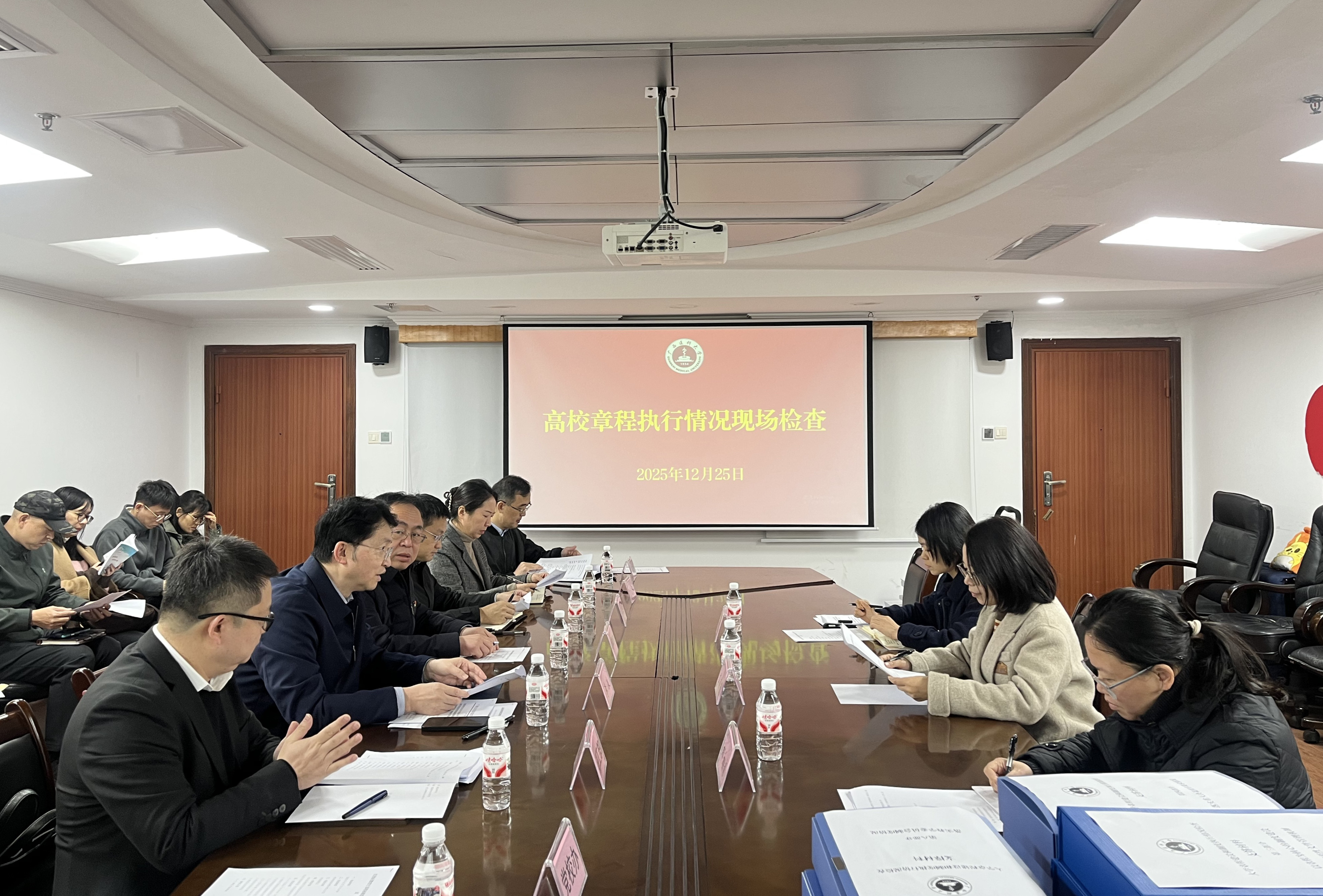 12月25日上午,自治区教育厅高校章程核准监管第一核查组到我校,实地抽查学校章程建设及制度执行情况。学校党委常委、副校长李浪出席并主持抽查工作会议。