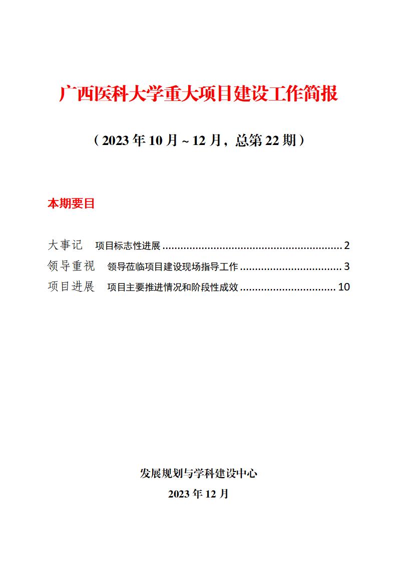 广西医科大学重大项目建设工作简报(2023年10月~12月,总第22期)