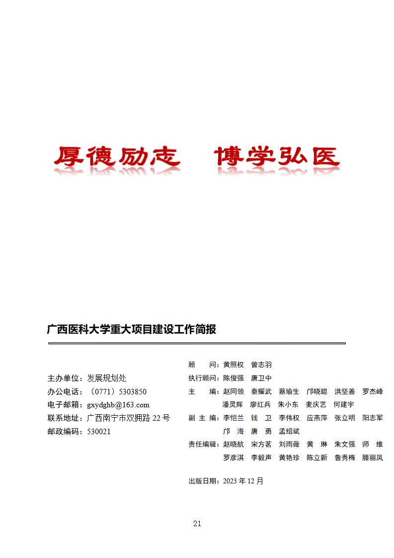 广西医科大学重大项目建设工作简报(2023年7月~9月,总第21期)
