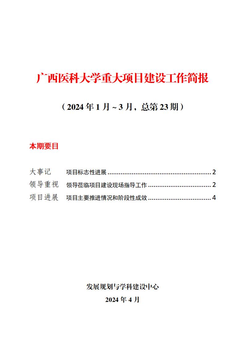 广西医科大学重大项目建设工作简报(2024年1月~3月,总第23期)