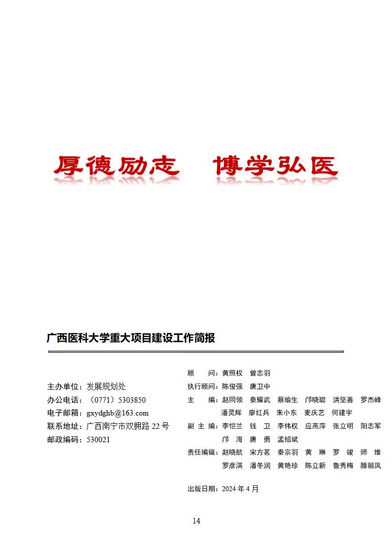 广西医科大学重大项目建设工作简报(2024年4月~6月,总第24期)