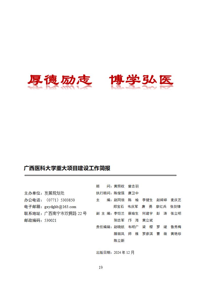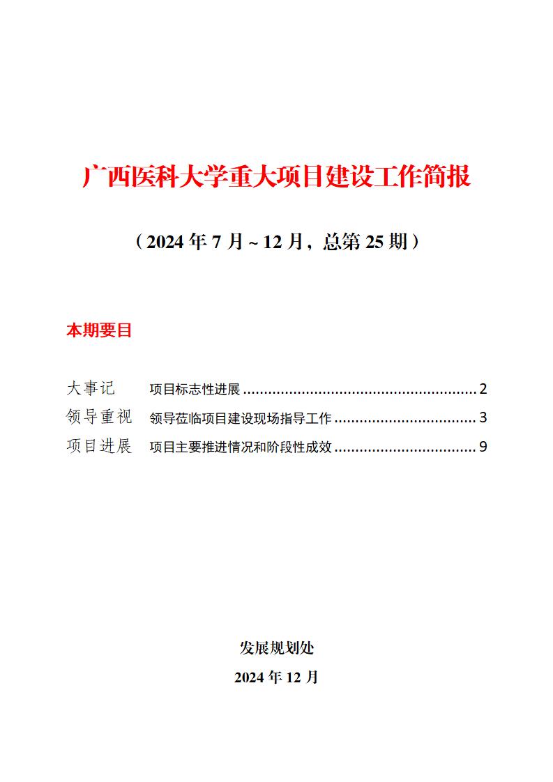 广西医科大学重大项目建设工作简报(2024年7月~12月,总第25期)