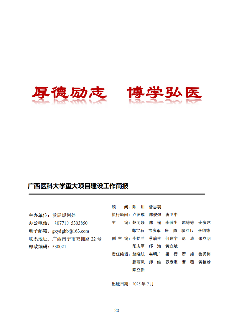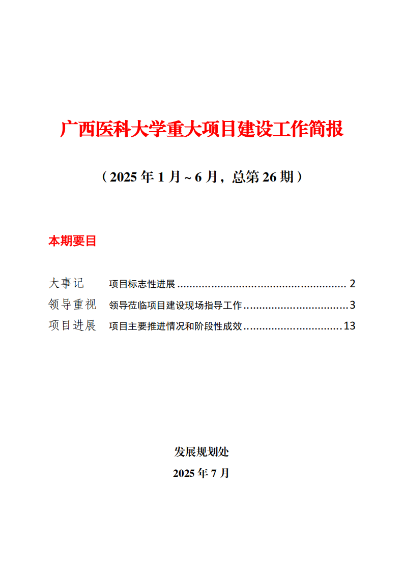 广西医科大学重大项目建设工作简报(2025年1月~6月,总第26期)